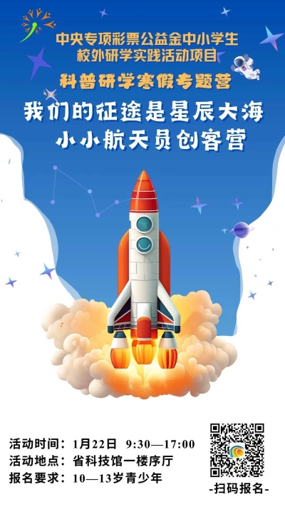 中央专项彩票公益金中小学生校外研学实践活动项目科普研学寒假专题营——我们的征途是星辰大海小小航天员创客营招募啦!